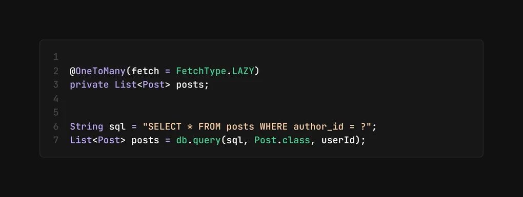 Instead of letting a framework ‘guess’ how to fetch a user and their posts, I write the JOIN explicitly.